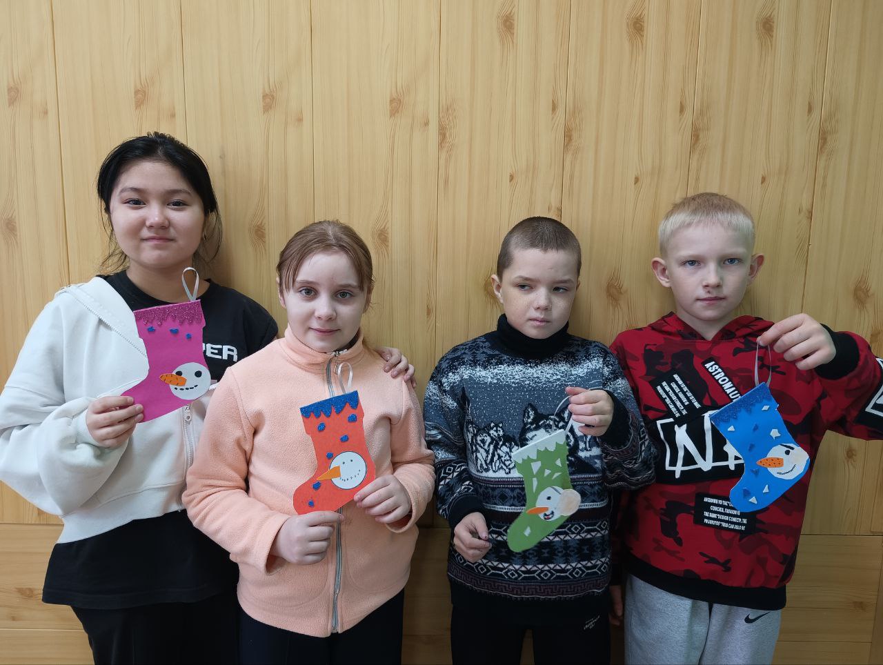 Первым занятием для юных мастеров стало создание традиционного русского символа зимы – валенок. Дети с энтузиазмом принялись за работу, увлеченно создавая миниатюрные валеночки, которые станут оригинальным украшением новогодней ёлки.