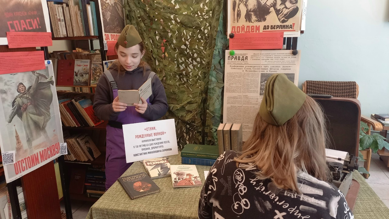 В рамках Года защитника Отечества и 80-летия Победы в Великой Отечественной войне 1941-1945 гг. наши читатели участвуют в библиотечной акции «Читаем стихи Симонова».