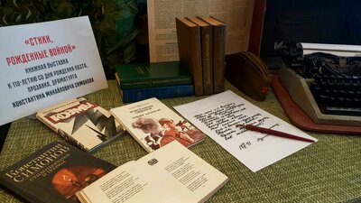 В Детской библиотеке подготовлена книжная выставка «Стихи, рождённые войной», посвященная 110-летию со дня рождения Константина Симонова. Выставка действует до конца недели.