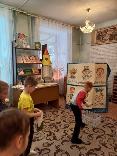Дошкольники и младшие школьники познакомились с выставкой книг Николая Носова, узнали о том, что о Незнайке и других коротышках, Николаем Николаевичем написаны три сказки, а заключительной «Незнайка на Луне» в 2025 году исполнилось 60 лет.